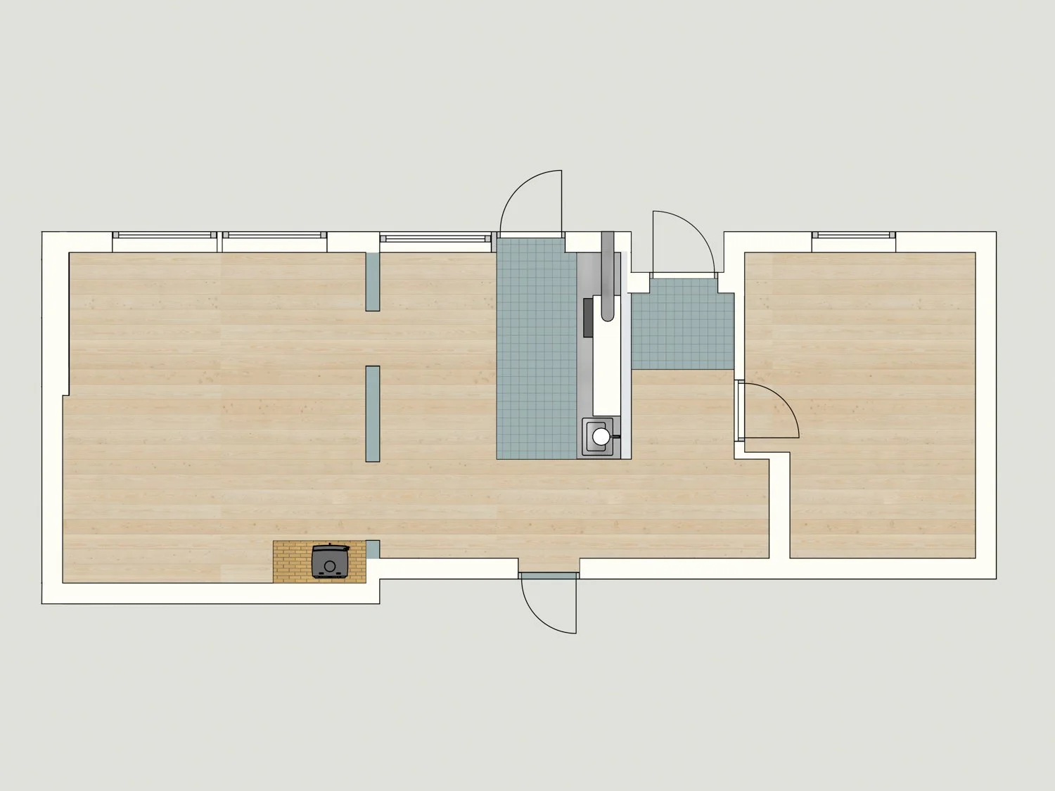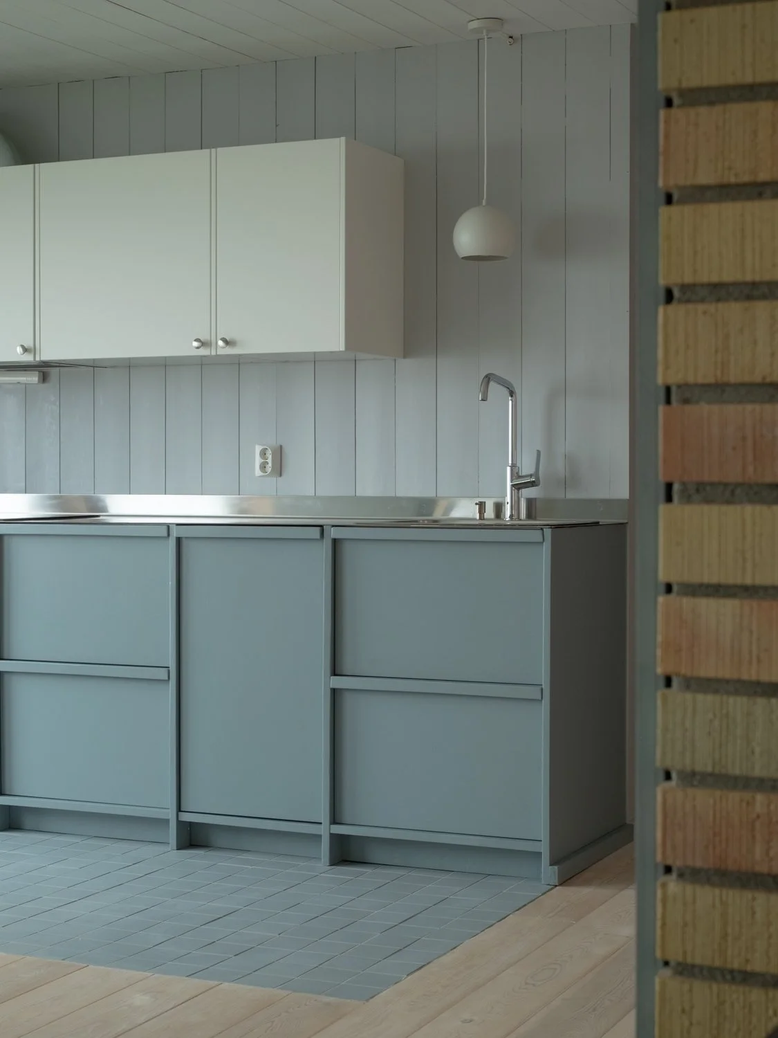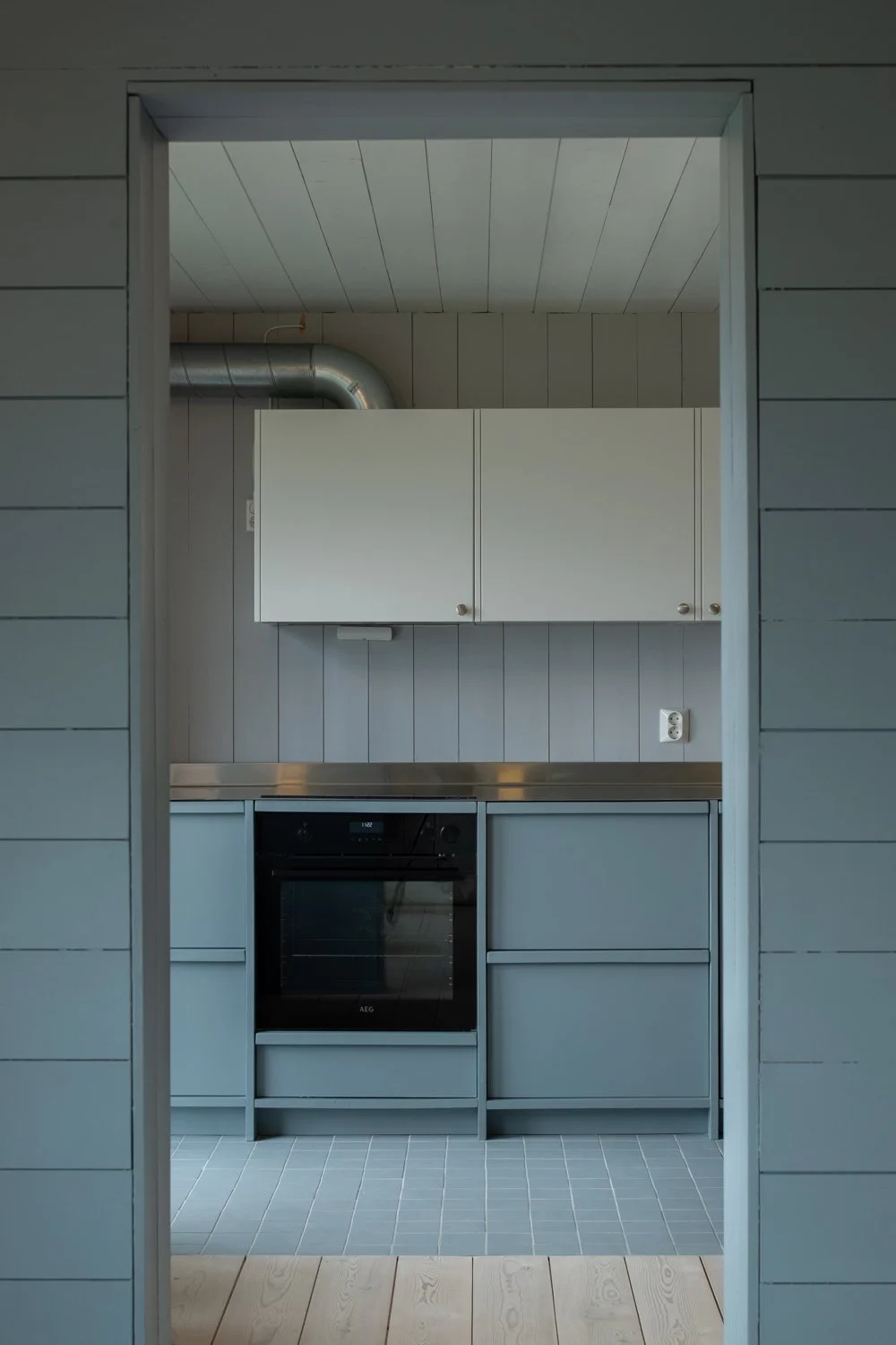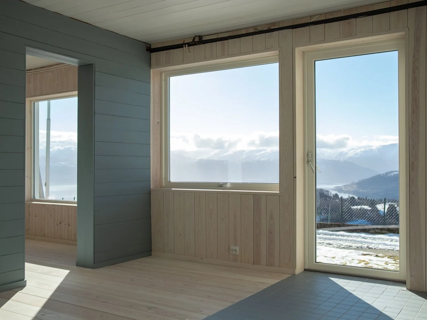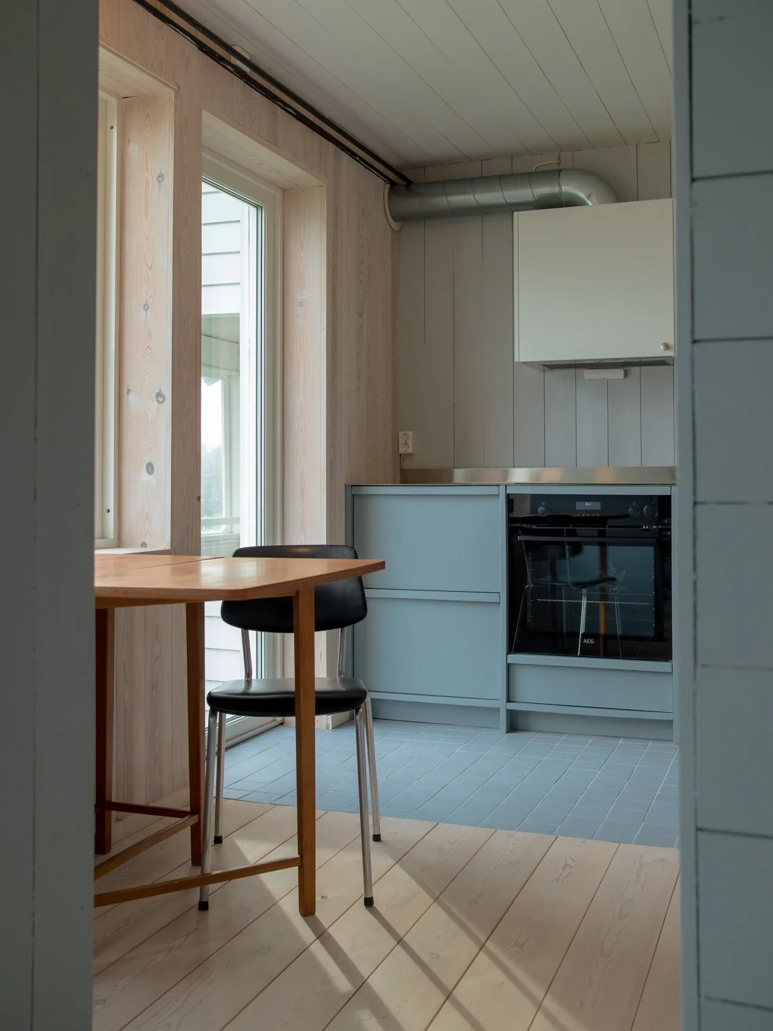 RENOVERING LEILEGHEITSamtlege nye overflater i måla og umåla furu, fliser i gang og kjøkensone. Nytt kjøken med altandør som gjev tilkomst til hage. Fliser: Winckelmans pale blue frå Modena.