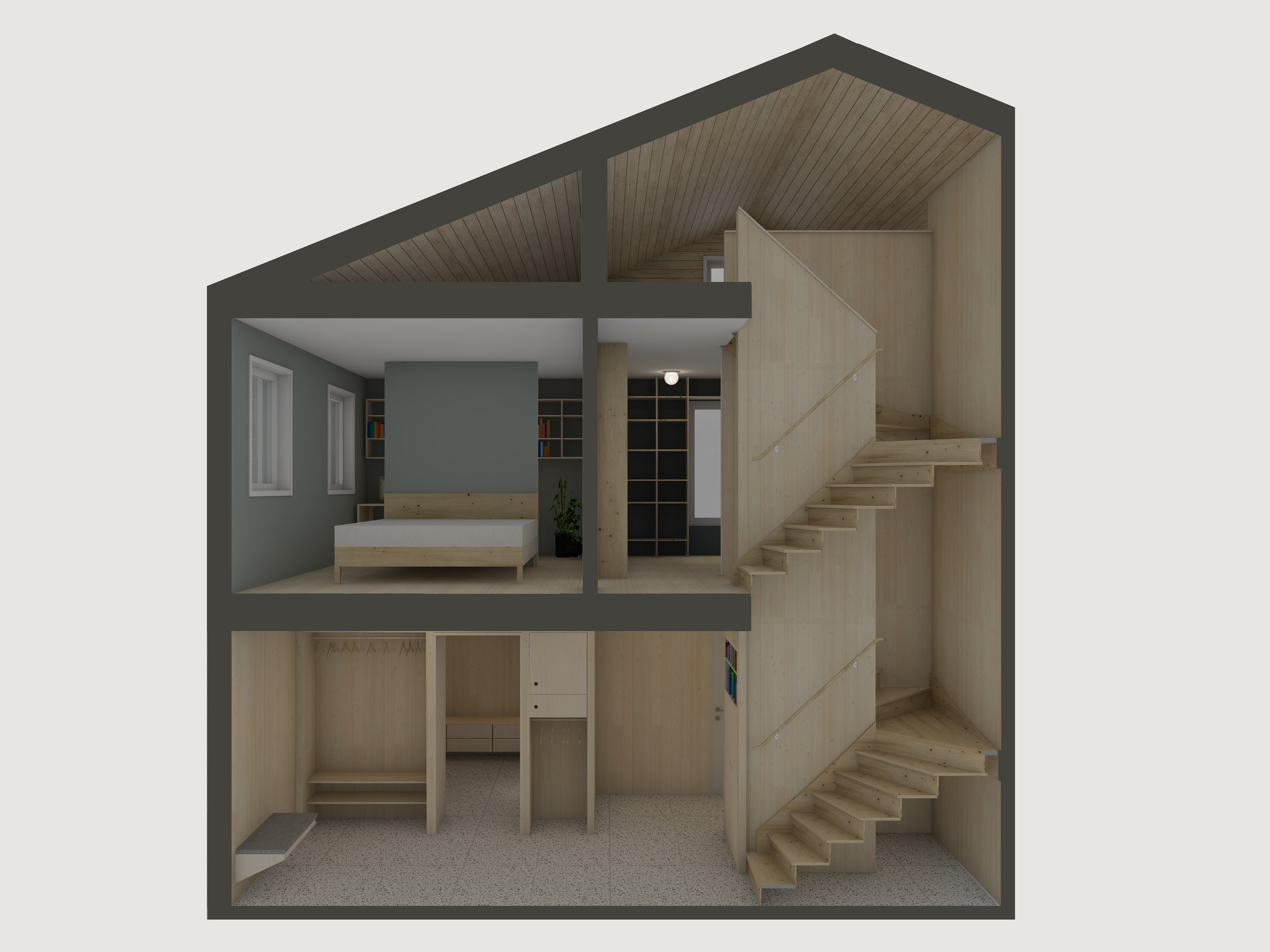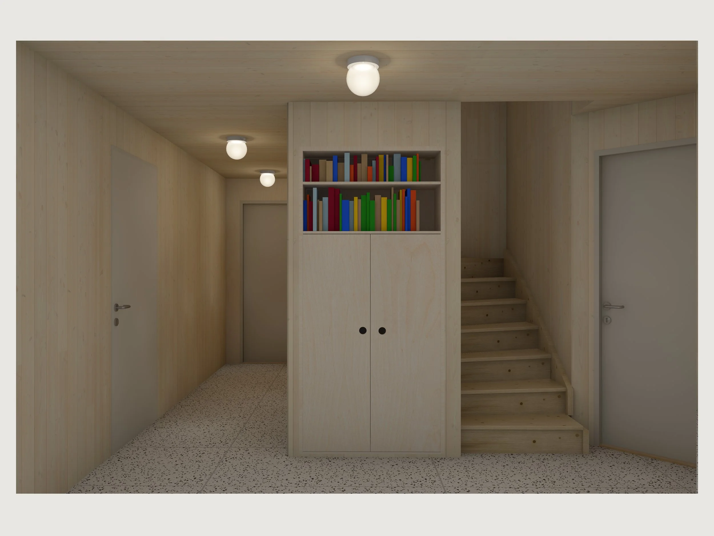 NY PLANLØYSING GANGEndra planløysing for betre arealutnytting i kjellaretg, tilpassing for etablering av heimekontor i 2. etg. Nye overflater av varige material. Status: Ikkje ferdigstilt