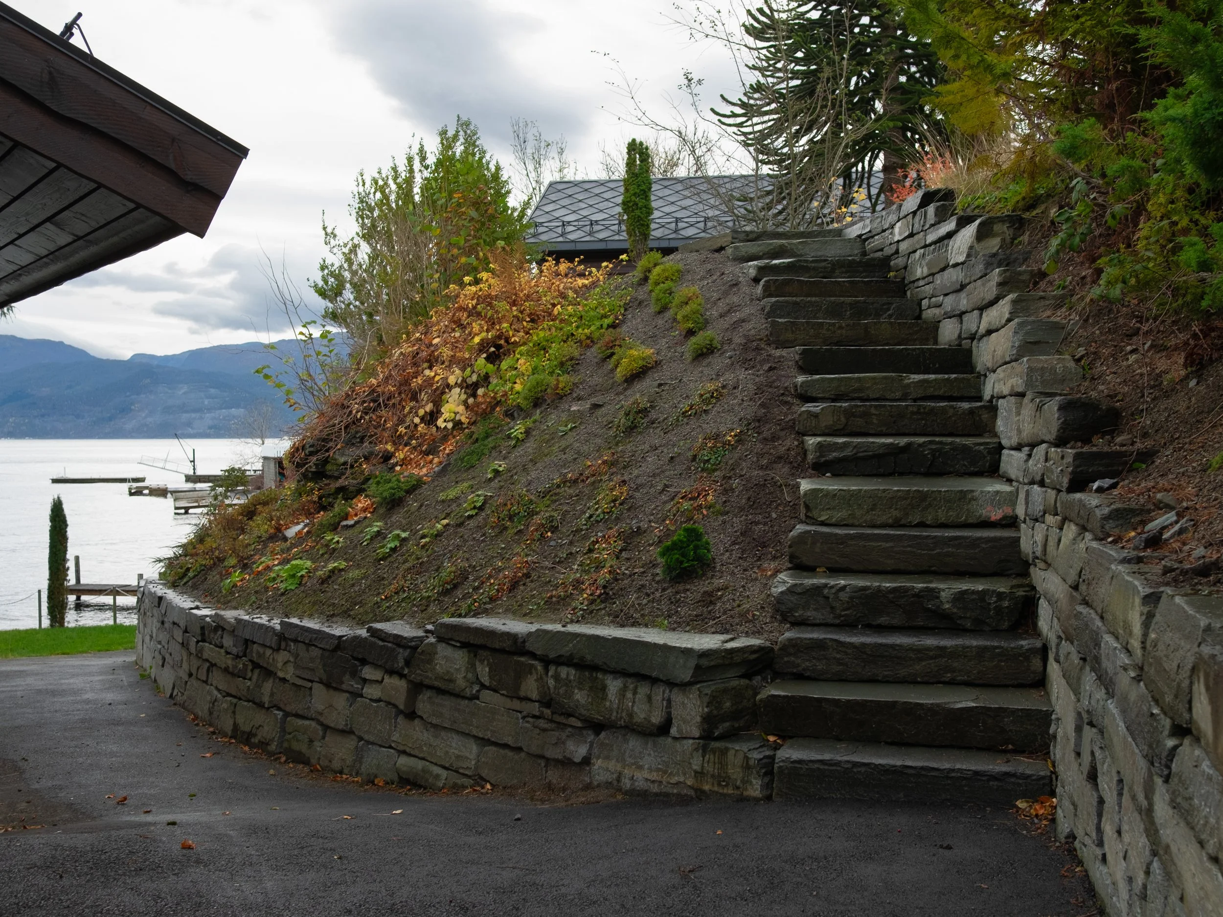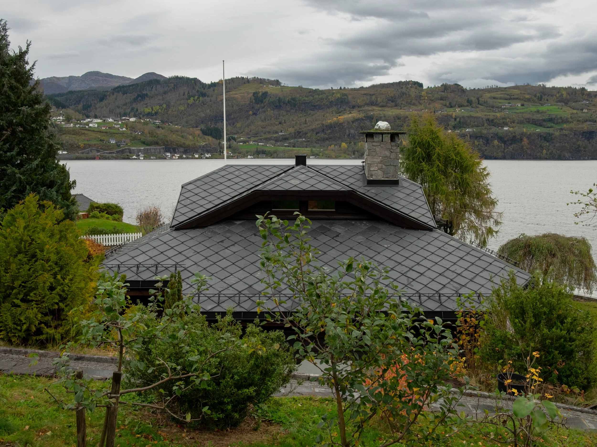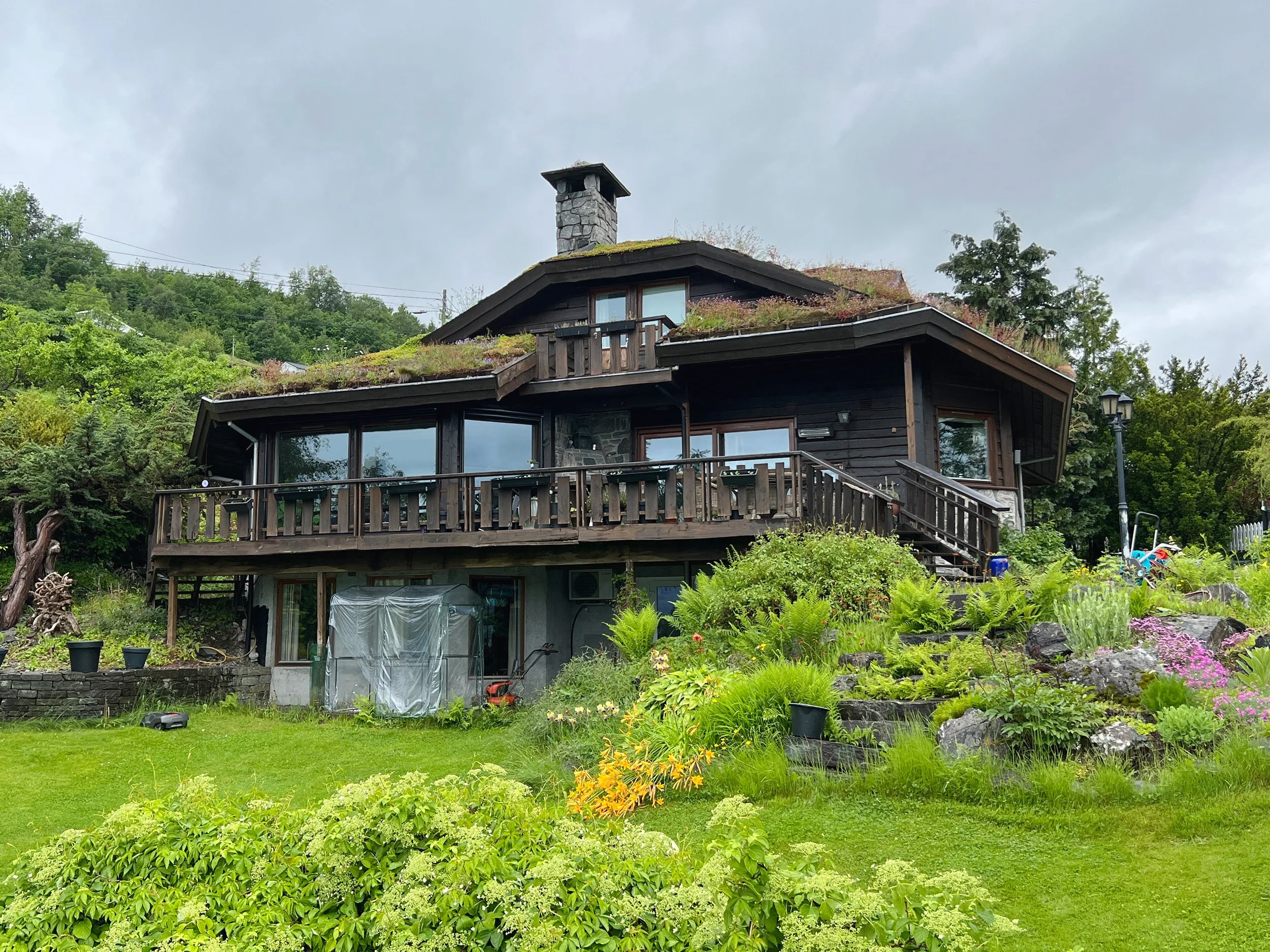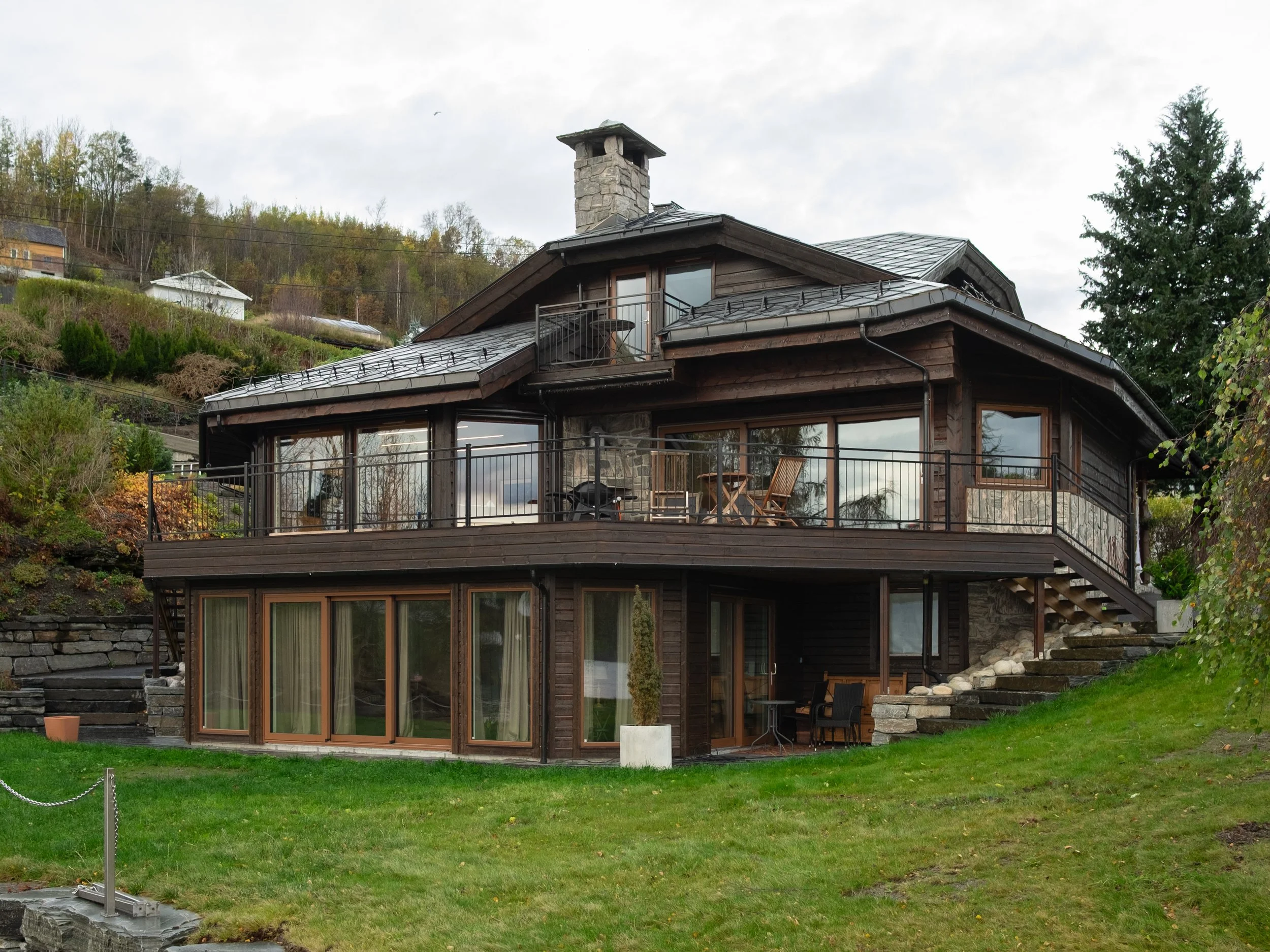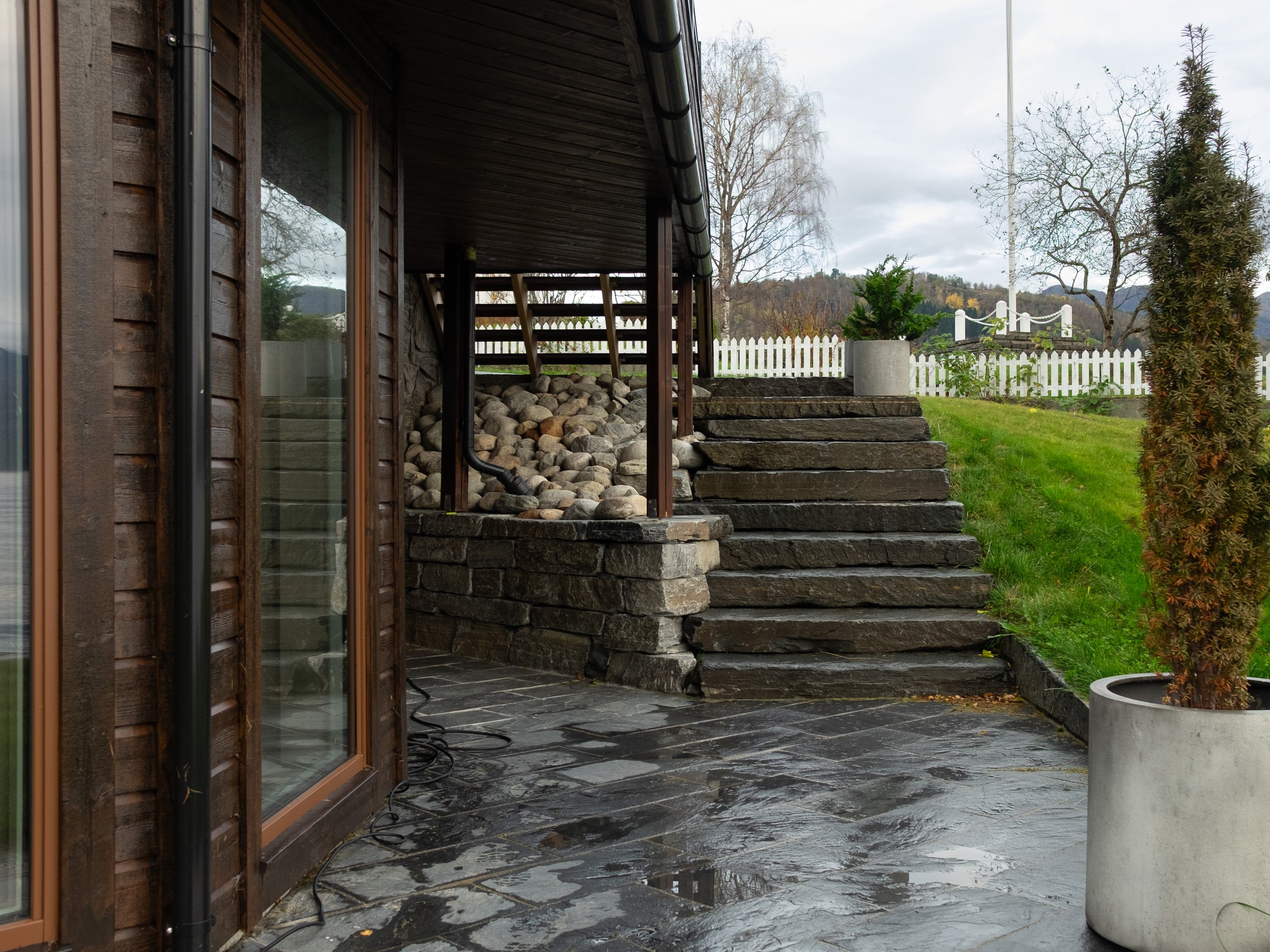 Renovering av bustad innvendig og utvendig. Utvida terrasse med nye trapper til hage, og ny vinterhage under terrasse. Nytt anneks over naust.